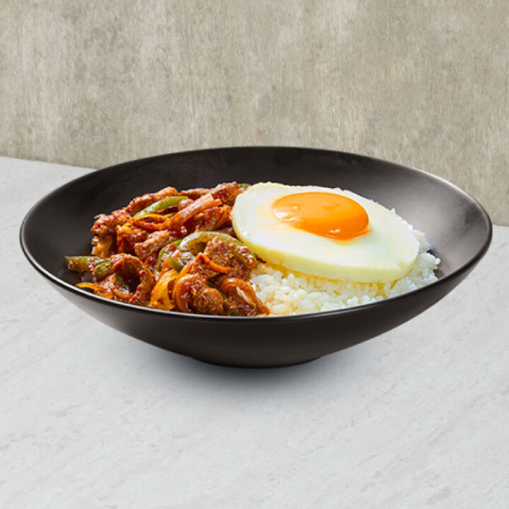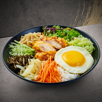 Nikmati semangkuk nasi kukus yang dihidangkan bersama hirisan peha ayam lembut berperisa kicap soya apabila anda memesan hidangan bibimbap ayam goreng kami! Bersama dengan hirisan rumpai laut, telur goreng dan sayur-sayuran yang diperap, ia merupakan hidangan Korea yang mengenyangkan dan tidak boleh dilepaskan. Gaulkan semuanya bersama kicap tambahan sebelum menikmati hidangan ini. Anda juga boleh memilih versi bibimbap pedas jika mahukan rasa lebih menyengat.